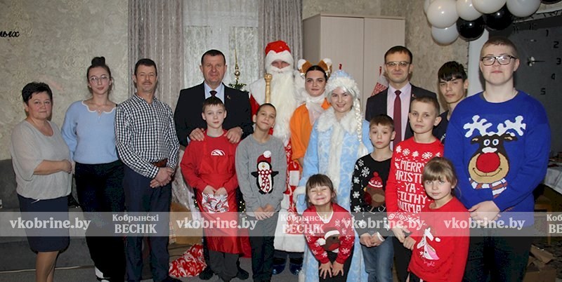Уже месяц Иван и Наталья Гутырко работают родителями-воспитателями в детском доме семейного типа №2. В канун Нового года и Рождества до учреждения дошла акция «Наши дети» - поздравить маленьких кобринчан приехали председатель райисполкома Александр Пачко и начальник отдела по образованию райисполкома Александр Шеметюк.