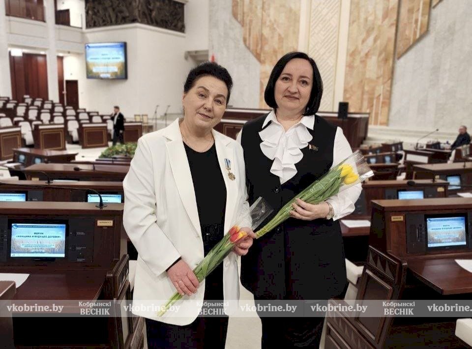 На фото делегат республиканского форума "Женщина и будущее деревни" от Кобринского района Галина Заруба и депутат Палаты представителей Национального собрания Республики Беларусь по Кобринскому избирательному округу Полина Василюк.