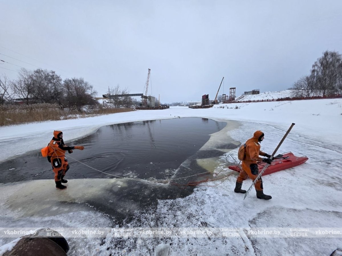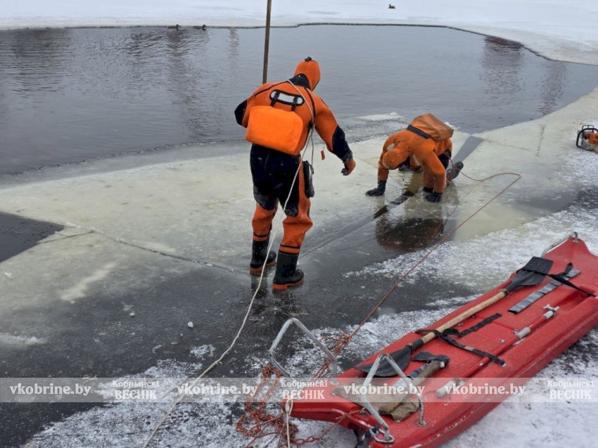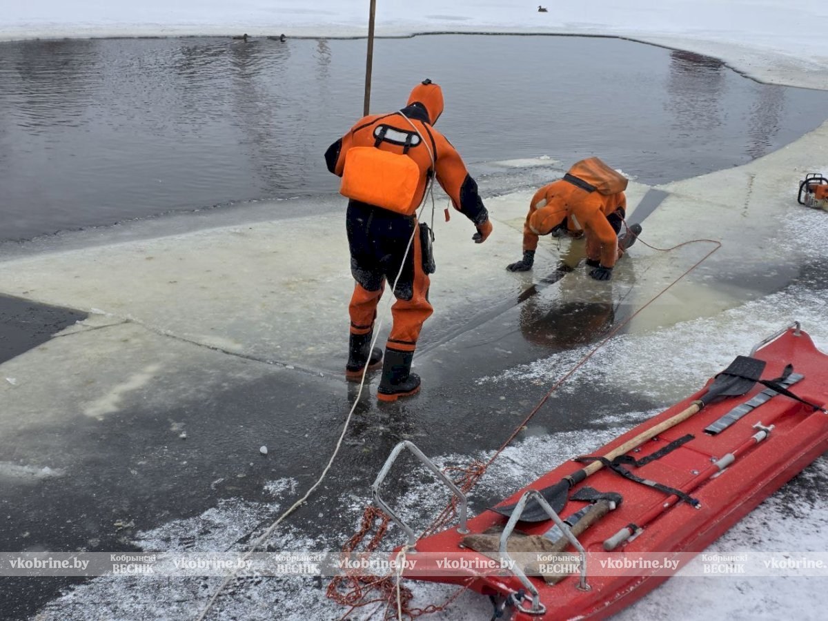 Кобринские спасатели подключились к спасению уток, расширив полыньи во льду.