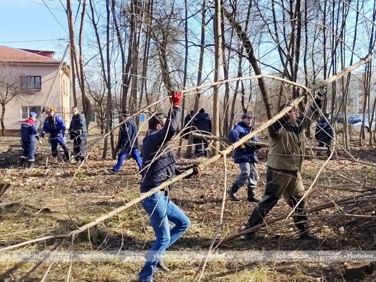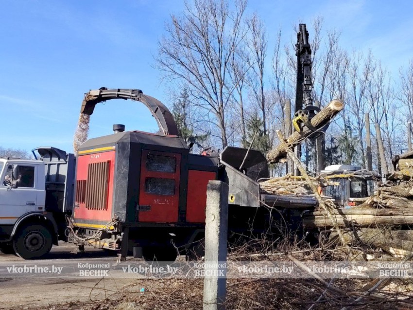 Срезанная древесина прямо на месте перерабатывается на щепу, которая пойдет на обеспечение топливом центральной городской котельной. В акции приняли участие около 60-ти неравнодушных кобринчан.