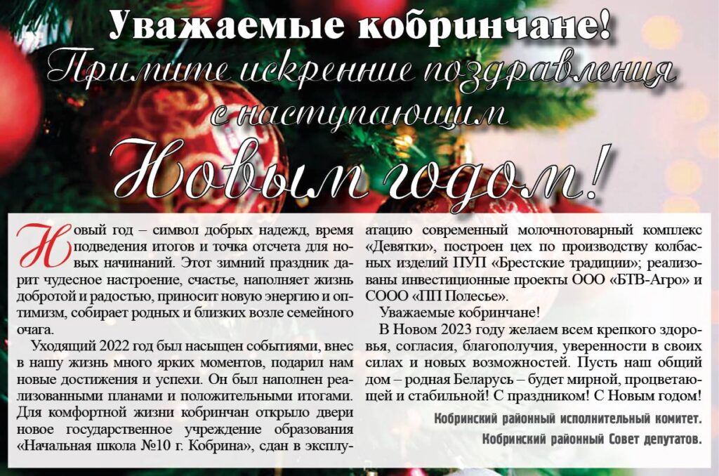 Уважаемые кобринчане! С наступающим Новым годом!