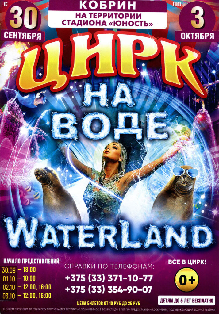 Приглашаем малышей и родителей в цирк на шоу "WATERLAND"! С 30 сентября по 3 октября на территории стадиона "Юность" вас ждет цирк на воде и целый водопад неповторимых эмоций, а также сложные цирковые номера с сочетанием различных жанров. Добавьте сюда креативное режиссерское решение, яркие наряды и оригинальные выступления профессионалов, и рецепт шоу для семейного просмотра готов!