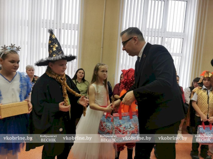 23 декабря, "Кобринский вестник"/ Дед Мороз, Снегурочка и многочисленные гости – заместитель председателя Федерации профсоюзов Беларуси Вадим Грачев, председатель Брестской областной организации Белорусского профессионального союза работников леса и природопользования Оксана Шемякова, директор производственного управления «Кобрингаз» Дмитрий Манцевич, председатель Кобринского районного комитета профсоюза работников образования и науки Галина Радкович пришли на новогоднюю елку к детям в Кобринскую специализированную образовательную школу-интернат.
