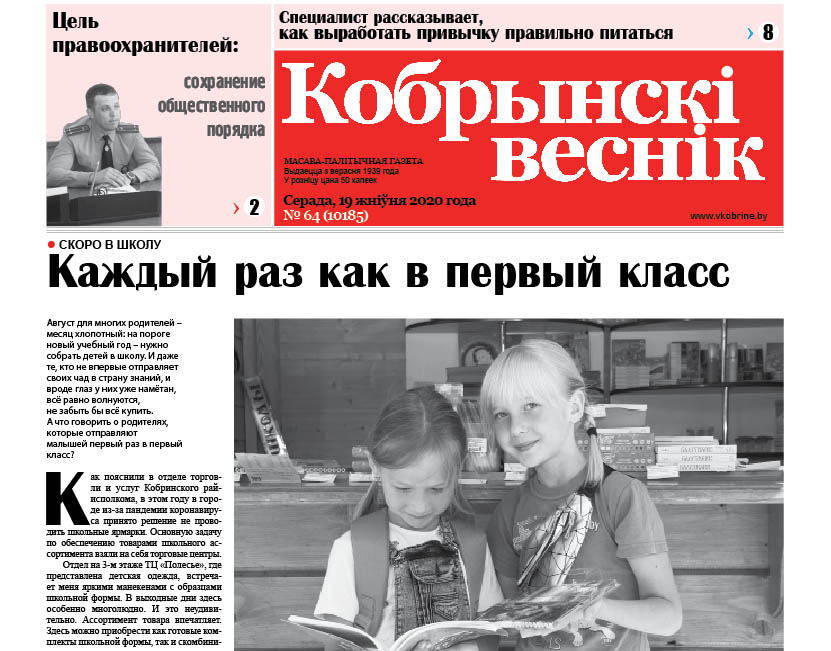 Уважаемые читатели! Газета «Кобрынскі веснік» выходит два раза в неделю – по средам (8 полос) и субботам (12 полос). Издание можно приобрести в киосках «Белсоюзпечать», а для большего удобства можно оформить подписку во всех отделениях почтовой связи или у почтальонов на дому.