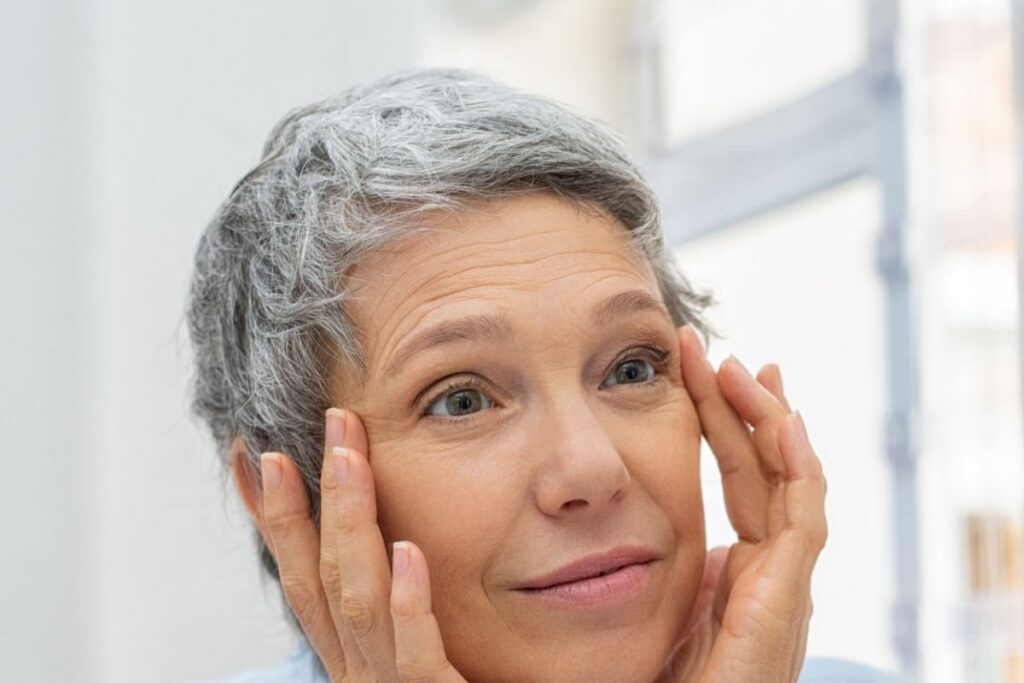 В этом периоде возрастные изменения становятся более выраженными, кожа требует усиленного внимания. Морщины становятся глубже, снижается упругость, появляется сухость и пигментация, может меняться овал лица.