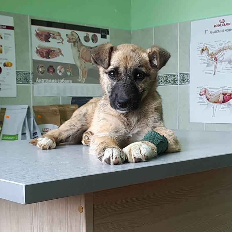 Щенок Ася на приеме после укуса клеща. ФОТО: КСЕНИЯ АЛИЗАР
