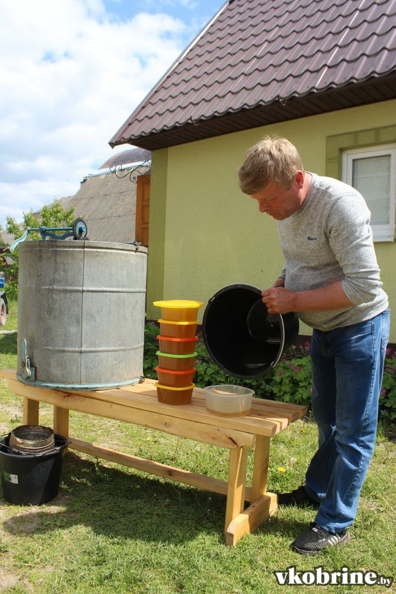 Запоздалая весна внесла коррективы в работу пчеловодов – сроки выкачки первого майского мёда сдвинулись примерно на две недели. Александр Утрата первый мёд выкачал у себя дома. По словам пчеловода – в этом году мёд очень хорошего качества. А с улья выходит примерно по 10 кг – это максимум, который может быть с одной пчелиной семьи.