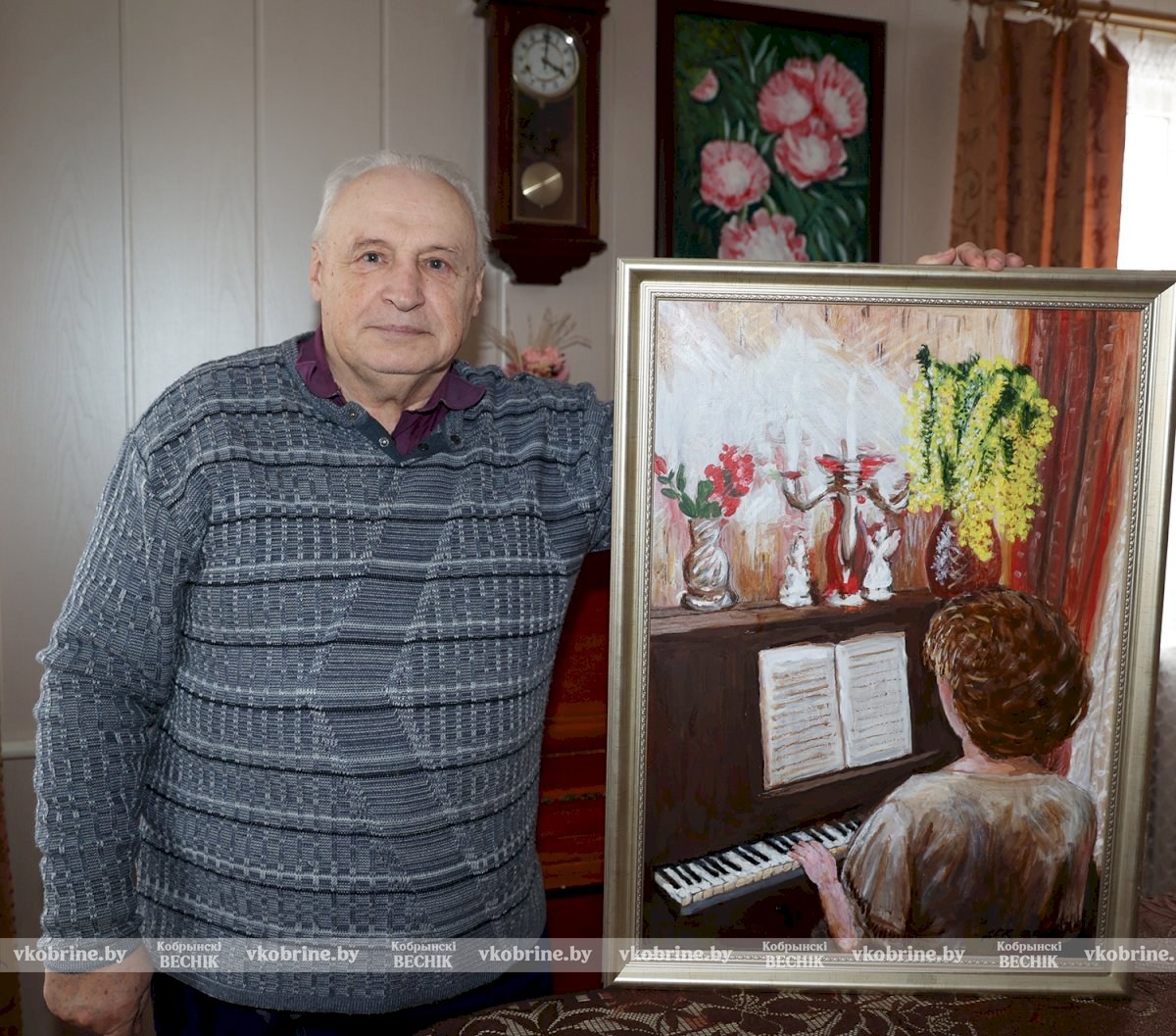Центральное место занимает изображение супруги за фортепиано – Ирина Леонидовна преподает в детской школе искусств г. Кобрина.