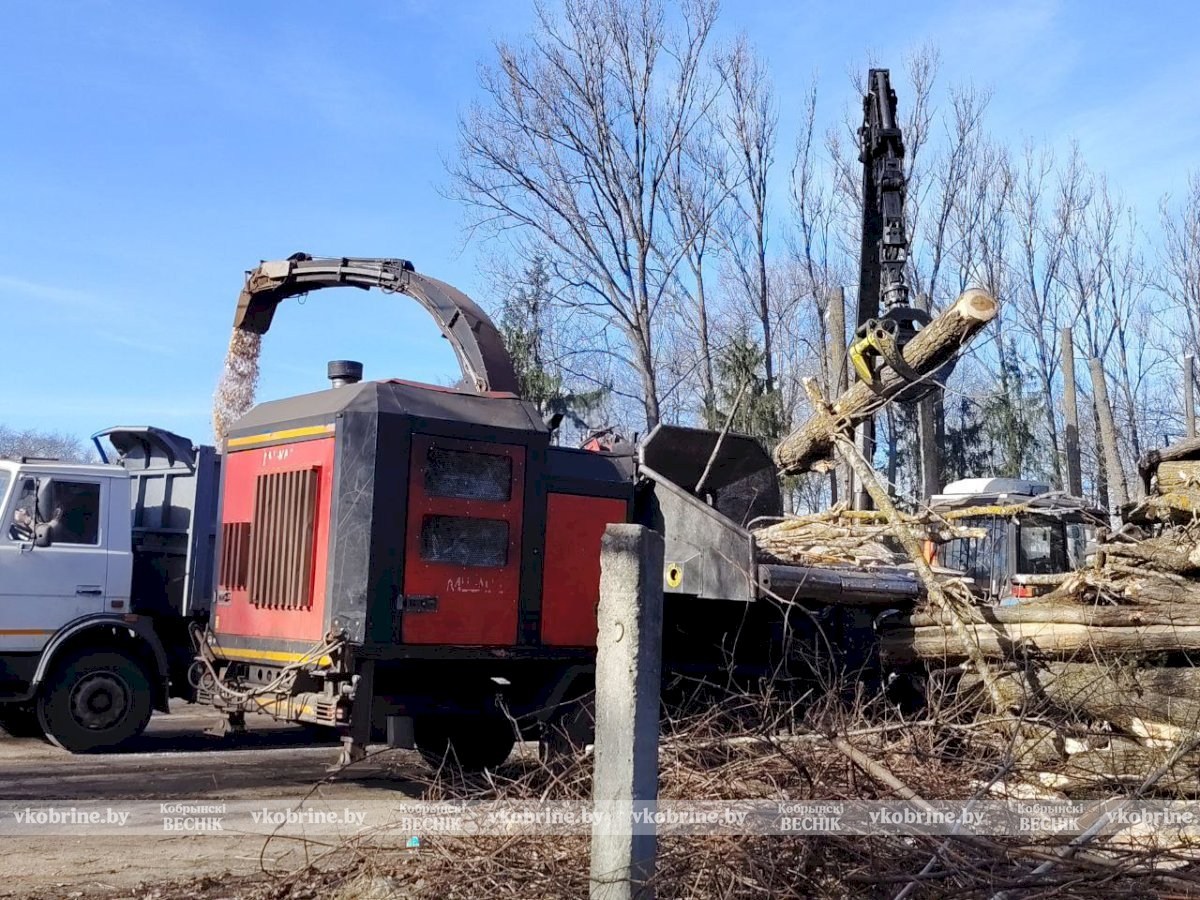 Срезанная древесина прямо на месте перерабатывается на щепу, которая пойдет на обеспечение топливом центральной городской котельной. В акции приняли участие около 60-ти неравнодушных кобринчан.