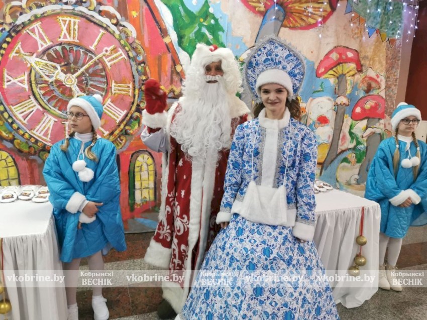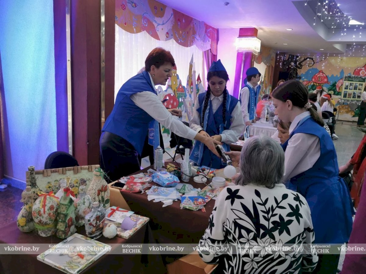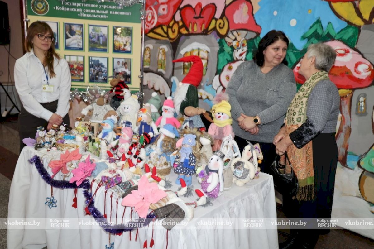 Яркая и теплая атмосфера охватила территорию Дворца культуры еще задолго до открытия торжественного мероприятия. Гостей на улице встречали горячим чаем, а в фойе разместилась выставка новогодних поделок от подопечных территориальных центров Кобринского, Дрогичинского, Жабинковского и Малоритского районов и воспитанников районного центра детского творчества.